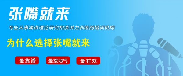 专注、专业、专心是“张嘴就来”演讲力训练机构的显著特色。成立九年来,“张嘴就来”一心一意做研究,一心一意搞培训,倾尽全力帮助公众提升演讲力,使他们在需要的时候能够“张嘴就来”!“张嘴就来”确信,这是自己应该承担的责任和使命并愿意为此奋斗终生。